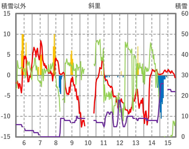 | 日 | 時 | 気温 | 降水 | 風向/風速 | 日照 | 積雪 | 降雪 |