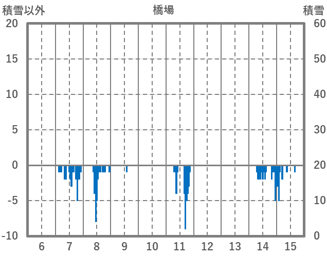 | 日 | 時 | 気温 | 降水 | 風向/風速 | 日照 | 積雪 | 降雪 |
