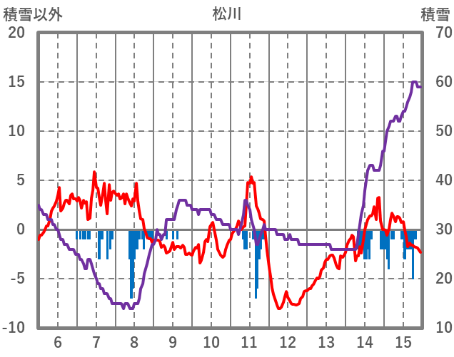 | 日 | 時 | 気温 | 降水 | 風向/風速 | 日照 | 積雪 | 降雪 |