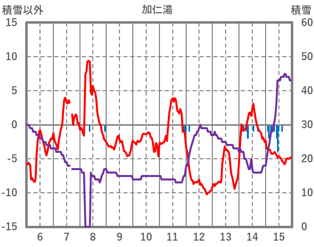 | 日 | 時 | 気温 | 降水 | 風向/風速 | 日照 | 積雪 | 降雪 |