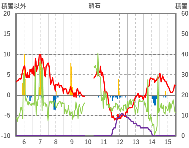 | 日 | 時 | 気温 | 降水 | 風向/風速 | 日照 | 積雪 | 降雪 |