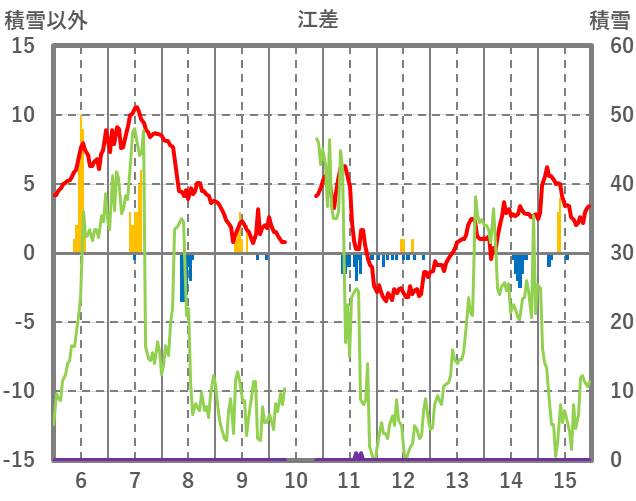 | 日 | 時 | 気温 | 降水 | 風向/風速 | 日照 | 積雪 | 降雪 |