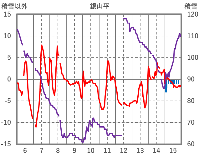 | 日 | 時 | 気温 | 降水 | 風向/風速 | 日照 | 積雪 | 降雪 |