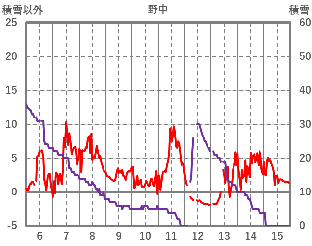 | 日 | 時 | 気温 | 降水 | 風向/風速 | 日照 | 積雪 | 降雪 |