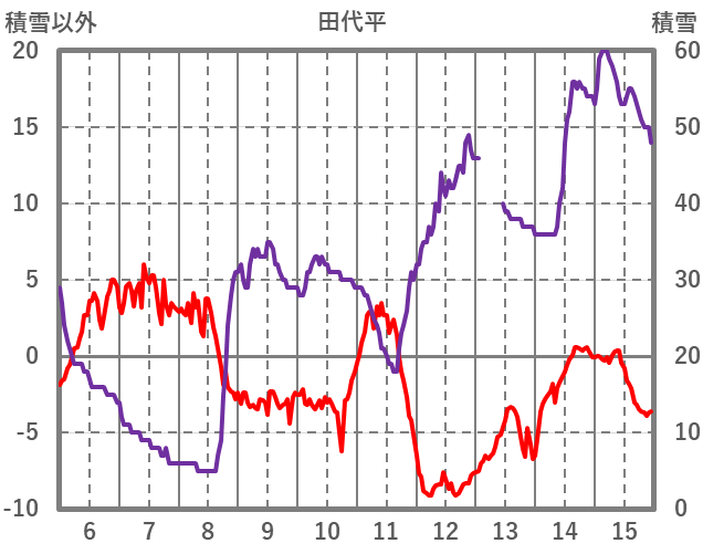 | 日 | 時 | 気温 | 降水 | 風向/風速 | 日照 | 積雪 | 降雪 |