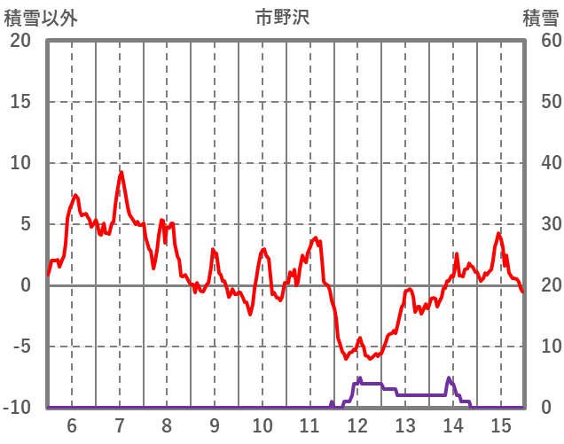 | 日 | 時 | 気温 | 降水 | 風向/風速 | 日照 | 積雪 | 降雪 |