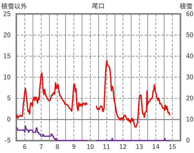 | 日 | 時 | 気温 | 降水 | 風向/風速 | 日照 | 積雪 | 降雪 |
