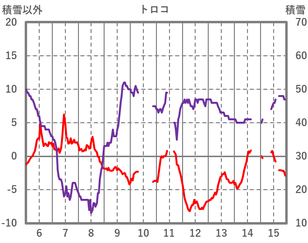 | 日 | 時 | 気温 | 降水 | 風向/風速 | 日照 | 積雪 | 降雪 |
