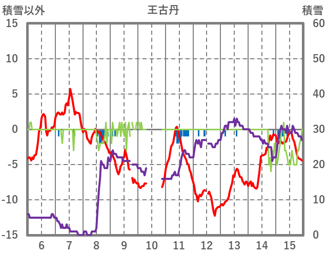 | 日 | 時 | 気温 | 降水 | 風向/風速 | 日照 | 積雪 | 降雪 |