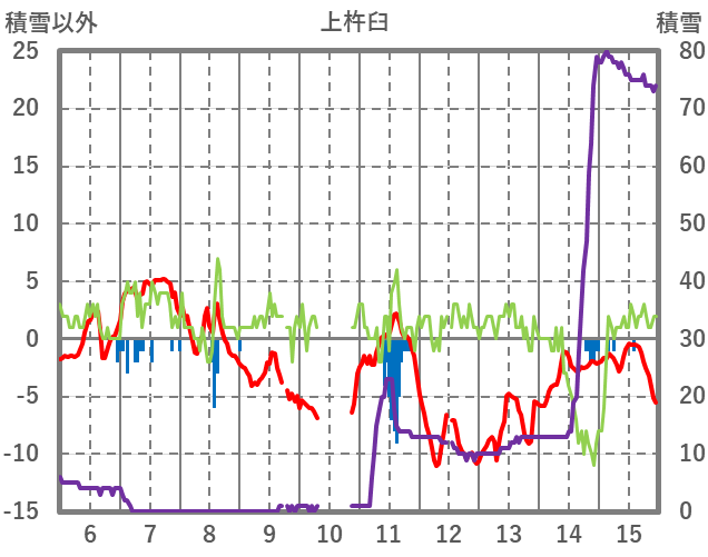 | 日 | 時 | 気温 | 降水 | 風向/風速 | 日照 | 積雪 | 降雪 |