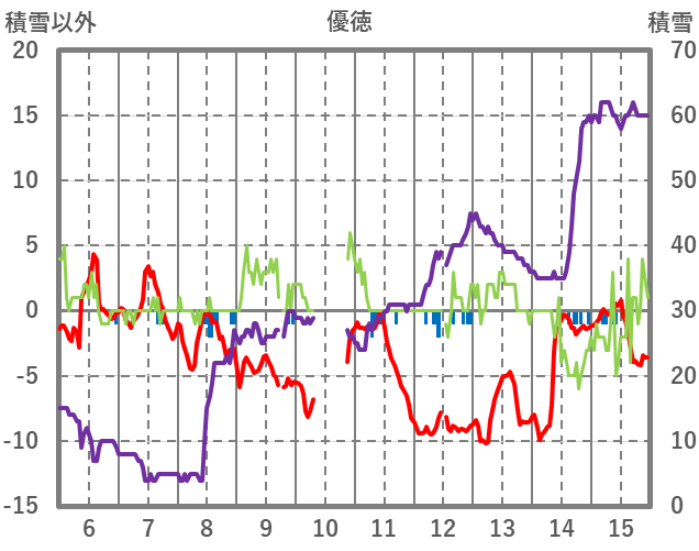 | 日 | 時 | 気温 | 降水 | 風向/風速 | 日照 | 積雪 | 降雪 |