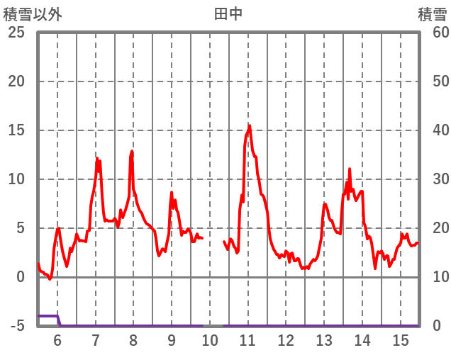 | 日 | 時 | 気温 | 降水 | 風向/風速 | 日照 | 積雪 | 降雪 |