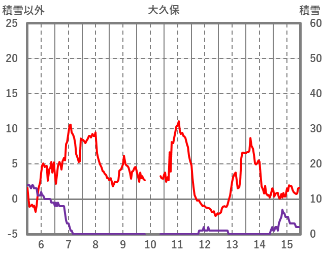 | 日 | 時 | 気温 | 降水 | 風向/風速 | 日照 | 積雪 | 降雪 |