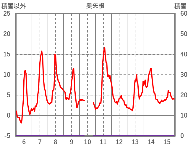 | 日 | 時 | 気温 | 降水 | 風向/風速 | 日照 | 積雪 | 降雪 |