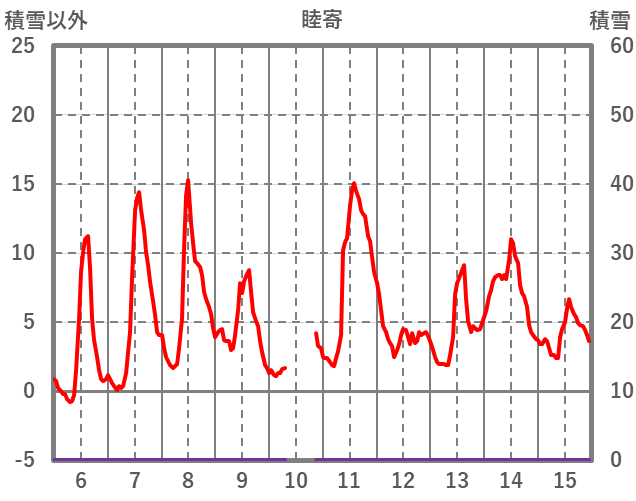 | 日 | 時 | 気温 | 降水 | 風向/風速 | 日照 | 積雪 | 降雪 |