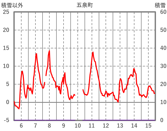 | 日 | 時 | 気温 | 降水 | 風向/風速 | 日照 | 積雪 | 降雪 |
