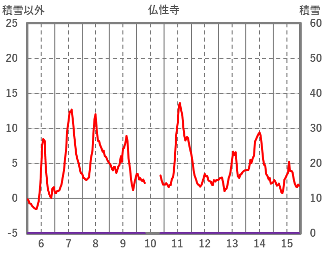 | 日 | 時 | 気温 | 降水 | 風向/風速 | 日照 | 積雪 | 降雪 |