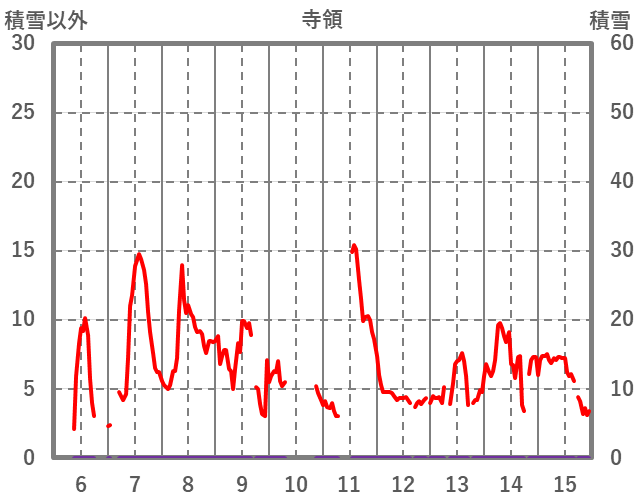 | 日 | 時 | 気温 | 降水 | 風向/風速 | 日照 | 積雪 | 降雪 |