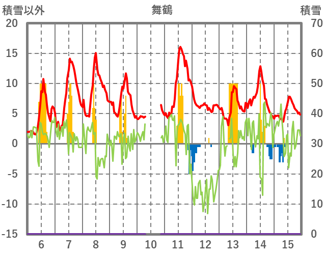 | 日 | 時 | 気温 | 降水 | 風向/風速 | 日照 | 積雪 | 降雪 |