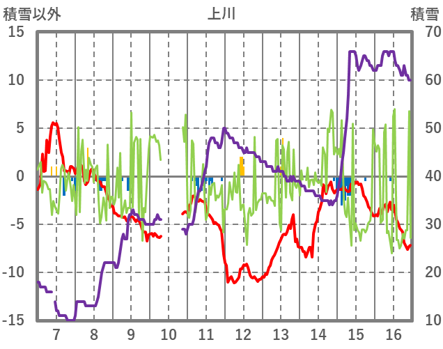 | 日 | 時 | 気温 | 降水 | 風向/風速 | 日照 | 積雪 | 降雪 |