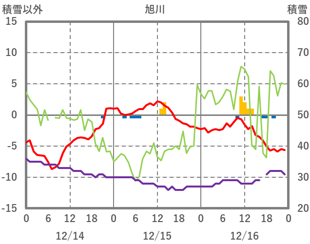 | 日 | 時 | 気温 | 降水 | 風向/風速 | 日照 | 積雪 | 降雪 |