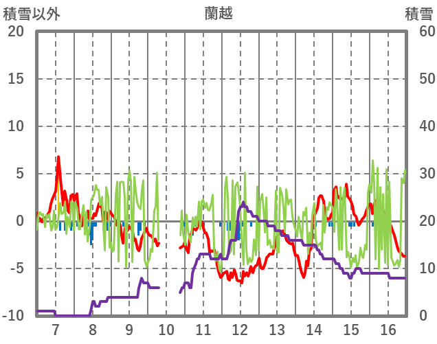 | 日 | 時 | 気温 | 降水 | 風向/風速 | 日照 | 積雪 | 降雪 |