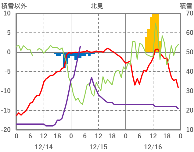 | 日 | 時 | 気温 | 降水 | 風向/風速 | 日照 | 積雪 | 降雪 |