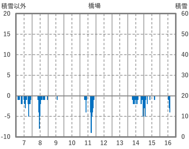 | 日 | 時 | 気温 | 降水 | 風向/風速 | 日照 | 積雪 | 降雪 |
