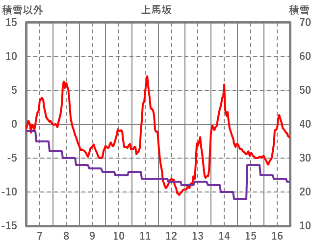 | 日 | 時 | 気温 | 降水 | 風向/風速 | 日照 | 積雪 | 降雪 |
