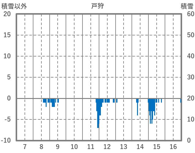 | 日 | 時 | 気温 | 降水 | 風向/風速 | 日照 | 積雪 | 降雪 |