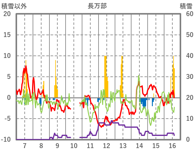 | 日 | 時 | 気温 | 降水 | 風向/風速 | 日照 | 積雪 | 降雪 |