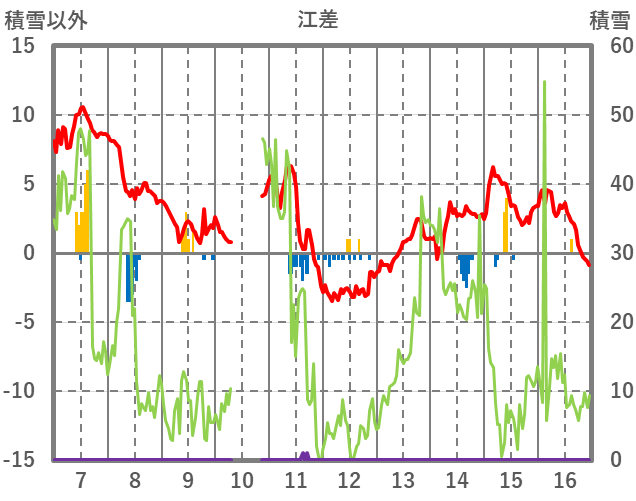 | 日 | 時 | 気温 | 降水 | 風向/風速 | 日照 | 積雪 | 降雪 |