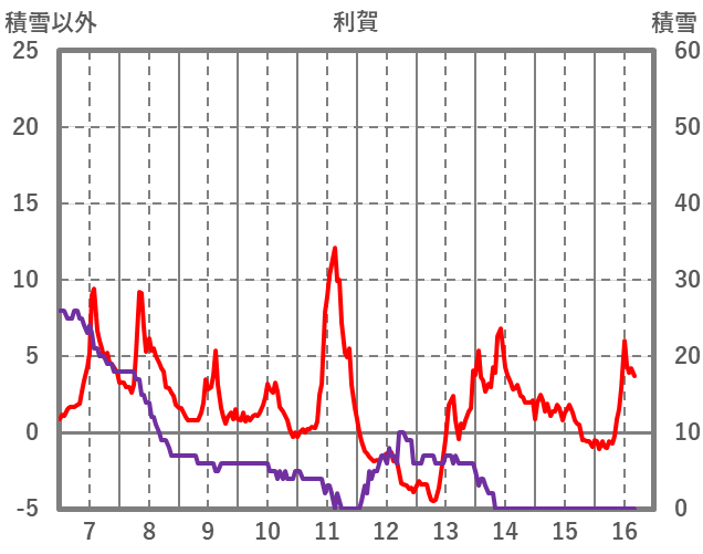 | 日 | 時 | 気温 | 降水 | 風向/風速 | 日照 | 積雪 | 降雪 |