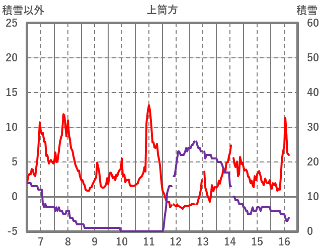 | 日 | 時 | 気温 | 降水 | 風向/風速 | 日照 | 積雪 | 降雪 |