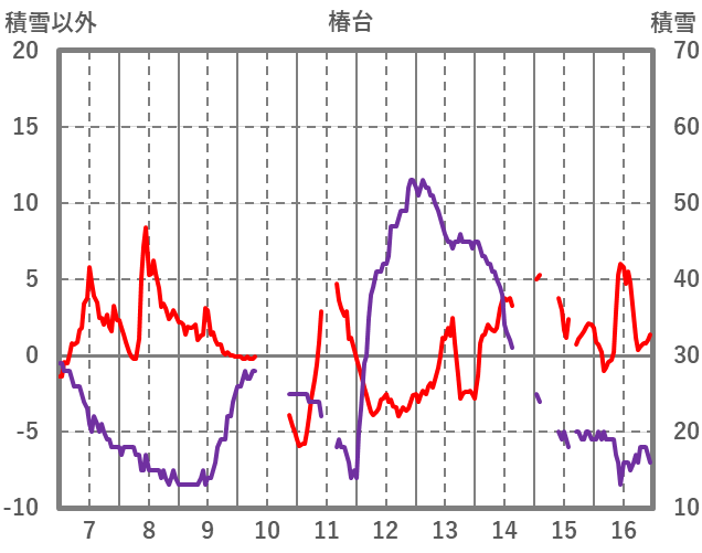 | 日 | 時 | 気温 | 降水 | 風向/風速 | 日照 | 積雪 | 降雪 |