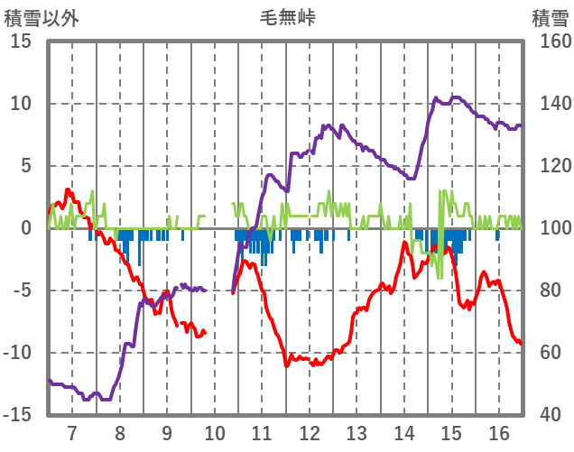 | 日 | 時 | 気温 | 降水 | 風向/風速 | 日照 | 積雪 | 降雪 |