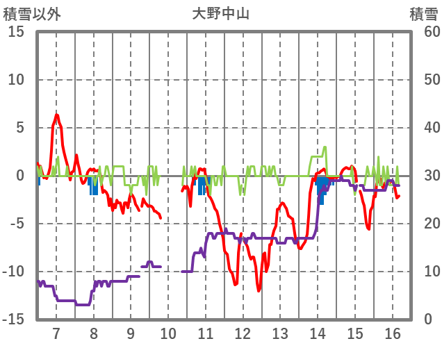 | 日 | 時 | 気温 | 降水 | 風向/風速 | 日照 | 積雪 | 降雪 |