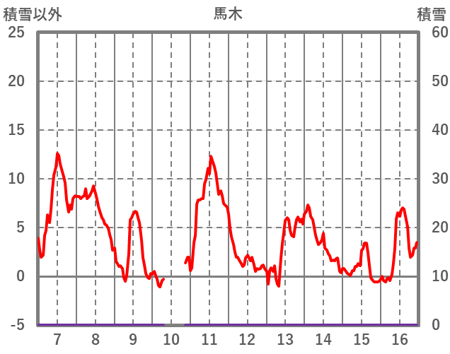 | 日 | 時 | 気温 | 降水 | 風向/風速 | 日照 | 積雪 | 降雪 |