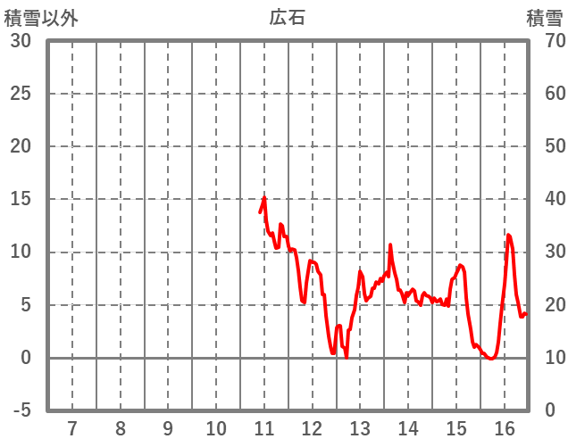 | 日 | 時 | 気温 | 降水 | 風向/風速 | 日照 | 積雪 | 降雪 |