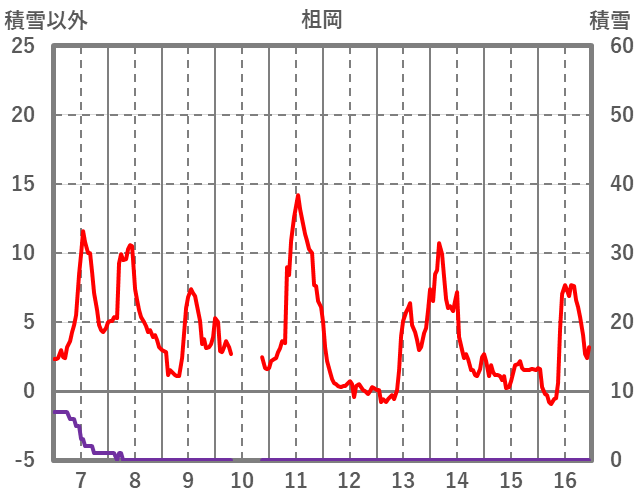 | 日 | 時 | 気温 | 降水 | 風向/風速 | 日照 | 積雪 | 降雪 |