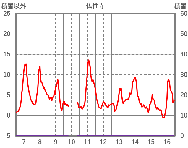 | 日 | 時 | 気温 | 降水 | 風向/風速 | 日照 | 積雪 | 降雪 |