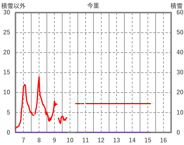 | 日 | 時 | 気温 | 降水 | 風向/風速 | 日照 | 積雪 | 降雪 |