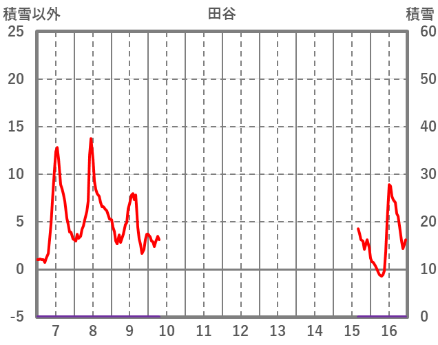 | 日 | 時 | 気温 | 降水 | 風向/風速 | 日照 | 積雪 | 降雪 |