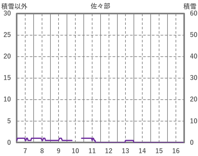 | 日 | 時 | 気温 | 降水 | 風向/風速 | 日照 | 積雪 | 降雪 |