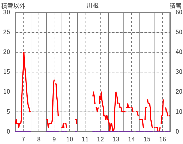 | 日 | 時 | 気温 | 降水 | 風向/風速 | 日照 | 積雪 | 降雪 |