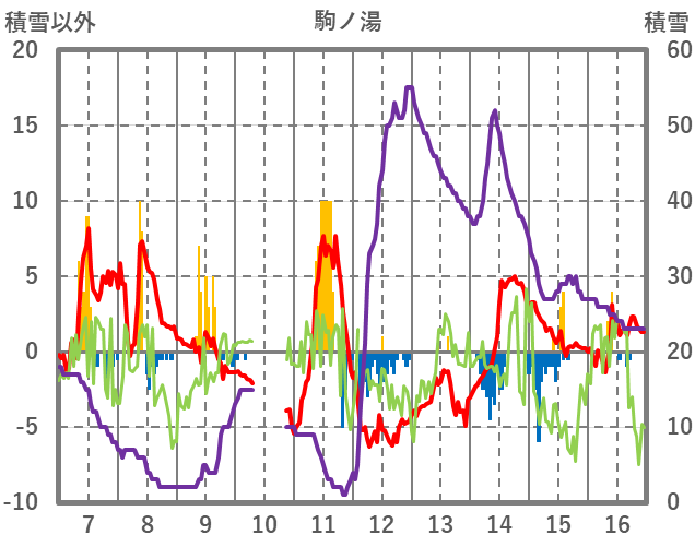 | 日 | 時 | 気温 | 降水 | 風向/風速 | 日照 | 積雪 | 降雪 |