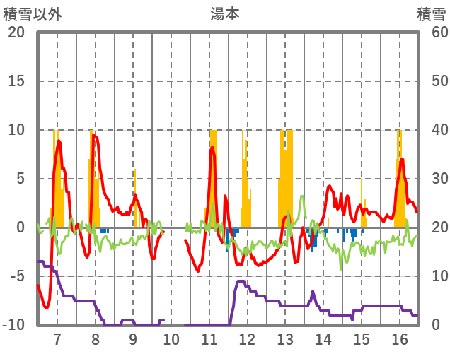| 日 | 時 | 気温 | 降水 | 風向/風速 | 日照 | 積雪 | 降雪 |