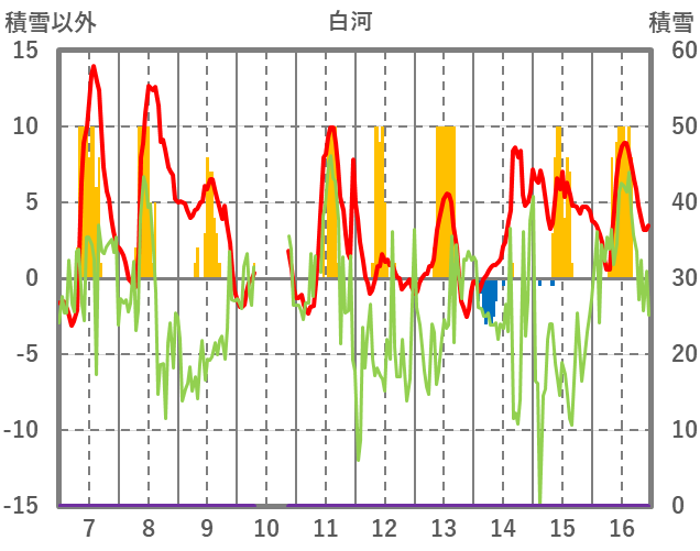 | 日 | 時 | 気温 | 降水 | 風向/風速 | 日照 | 積雪 | 降雪 |