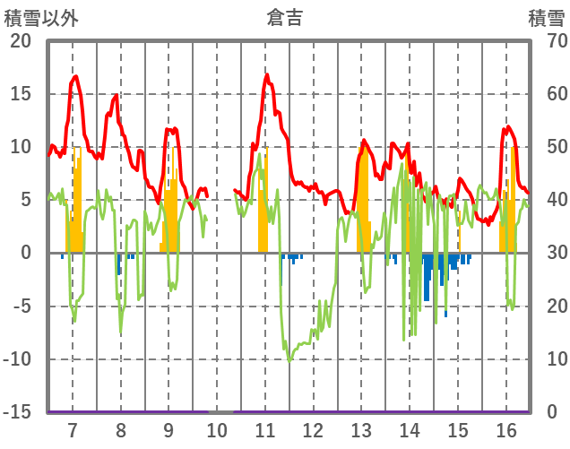 | 日 | 時 | 気温 | 降水 | 風向/風速 | 日照 | 積雪 | 降雪 |