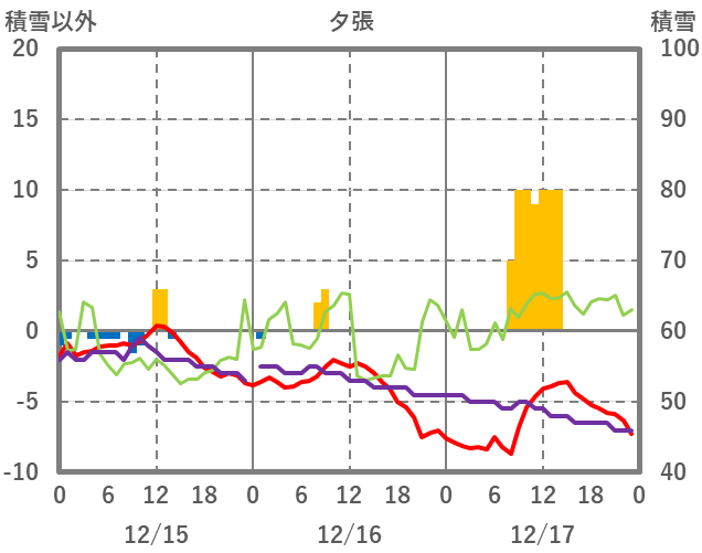 | 日 | 時 | 気温 | 降水 | 風向/風速 | 日照 | 積雪 | 降雪 |